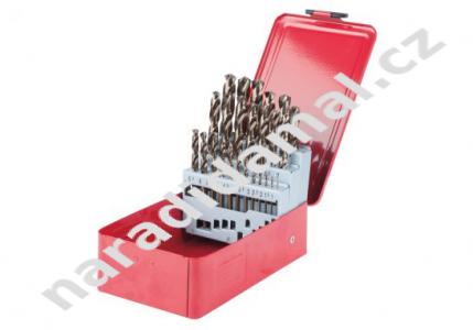 25dílná sada vrtáků do kovu a nerezu v kovovém boxu HSS-Co, DIN 338, 135°