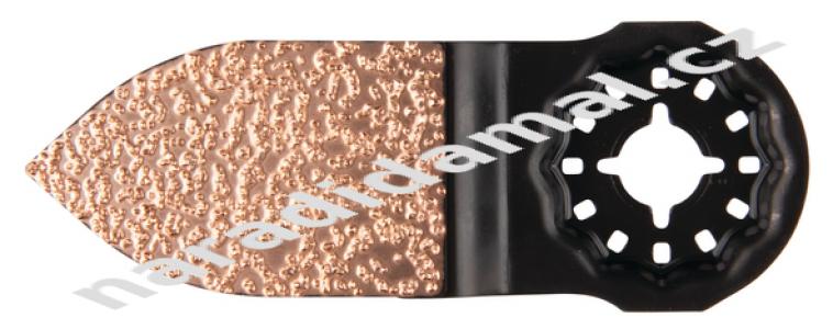 Brusný list s povlakem ze slinutého karbidu, prstovitého tvaru. K hrubému broušení stěrkových hmot, lepidel na dlažbu, malty, dřeva i epoxidů. Délka hrany 50 mm.