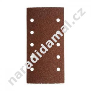 Brusný papír 115 x 229 se 10 otvory Makita pro barevné kovy, plasty, tvrdé/měkké dřevo, dřevo se hřebíky, kov, kámen. Použití pro vibrační brusky Makita BO4900V a 9046 a další velké vibrační brusky.