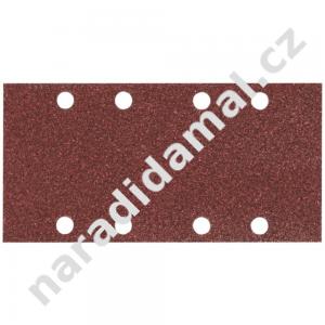 Brusný papír se suchým zipem 93 x 185 mm s 8 otvory používaný na barevné kovy, plasty, tvrdé/měkké dřevo, dřevo se hřebíky, kov, kámen.